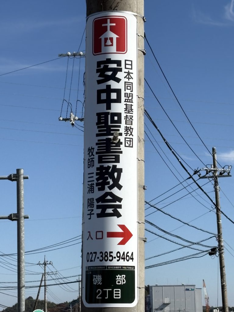 会堂の入り口の電柱につきました。皆さんに入り口がわかりやすくなることを祈っての設置です。用いられますように!